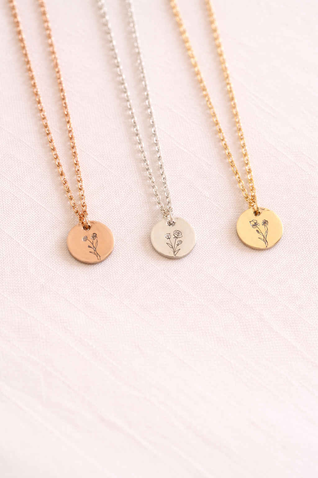 Si vous voulez une GRAVURE SUPPLÉMENTAIRE (VERSO) plutôt que plusieurs pendentifs, c'est possible de mettre une fleur d'un bord et une au recto pour 15$, juste ici: https://www.holiveatelier.com/products/gravure-verso-collier-fleur-de-naissance-adulte